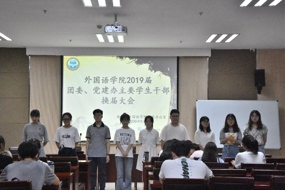 于龙子湖校区繁塔楼会议室A324举办了2020年团委、党建办主要学生干部换届选举大会。团委书记李沛,辅导员王颖、牛烁携2019届主要学生干部及各班班长支书出席会议并担任评委。