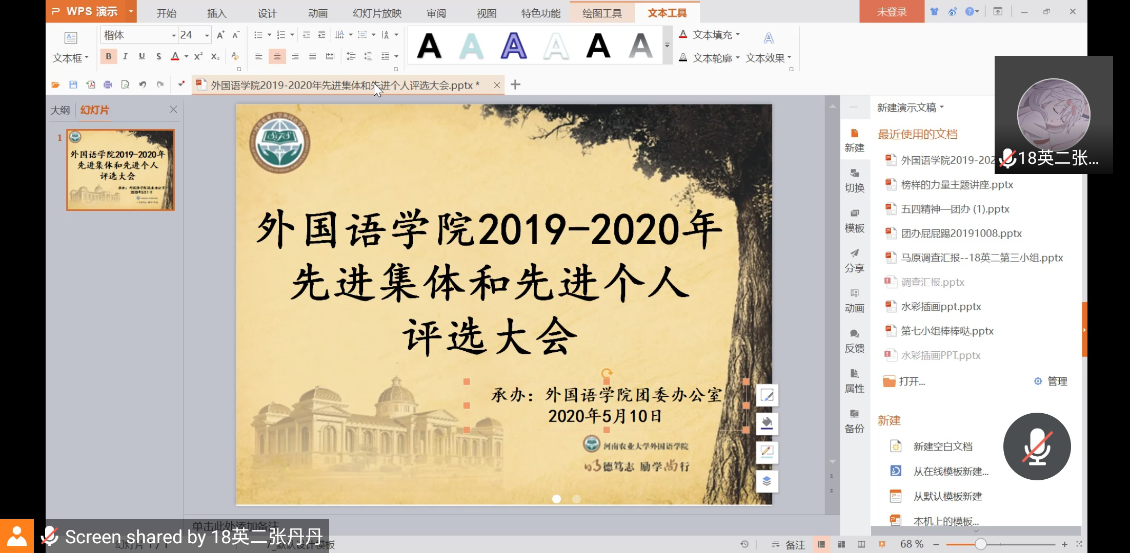 通过腾讯会议以线上形式举办2019-2020年度校级先进集体和先进个人评选大会,共有41名同学及6个班集体参与评选。哔咔漫画
