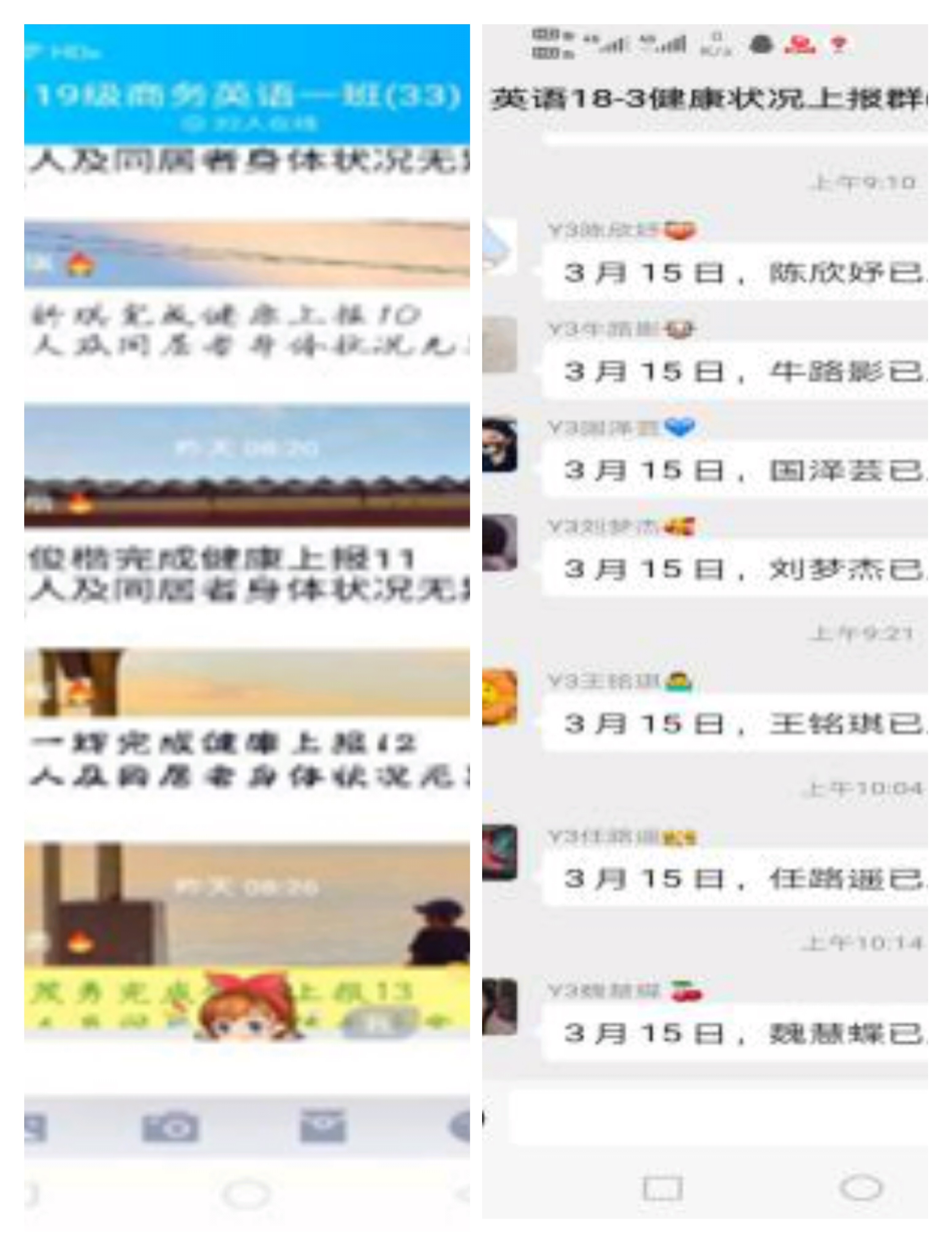 本专科生构建了由学院党委副书记周晓负责,年级辅导员、各班班主任、各班班委具体监督负责的“学院—年级—班级—班小组”四级网格化管理体系。学院严格按照校党委学工部的安排每天下午16:00前上报各班的学生的身体状况的报告,时刻更新学生的身体健康信息,加强疫情摸排、掌控学生在家出行轨迹,严格做到不漏报、不瞒报。