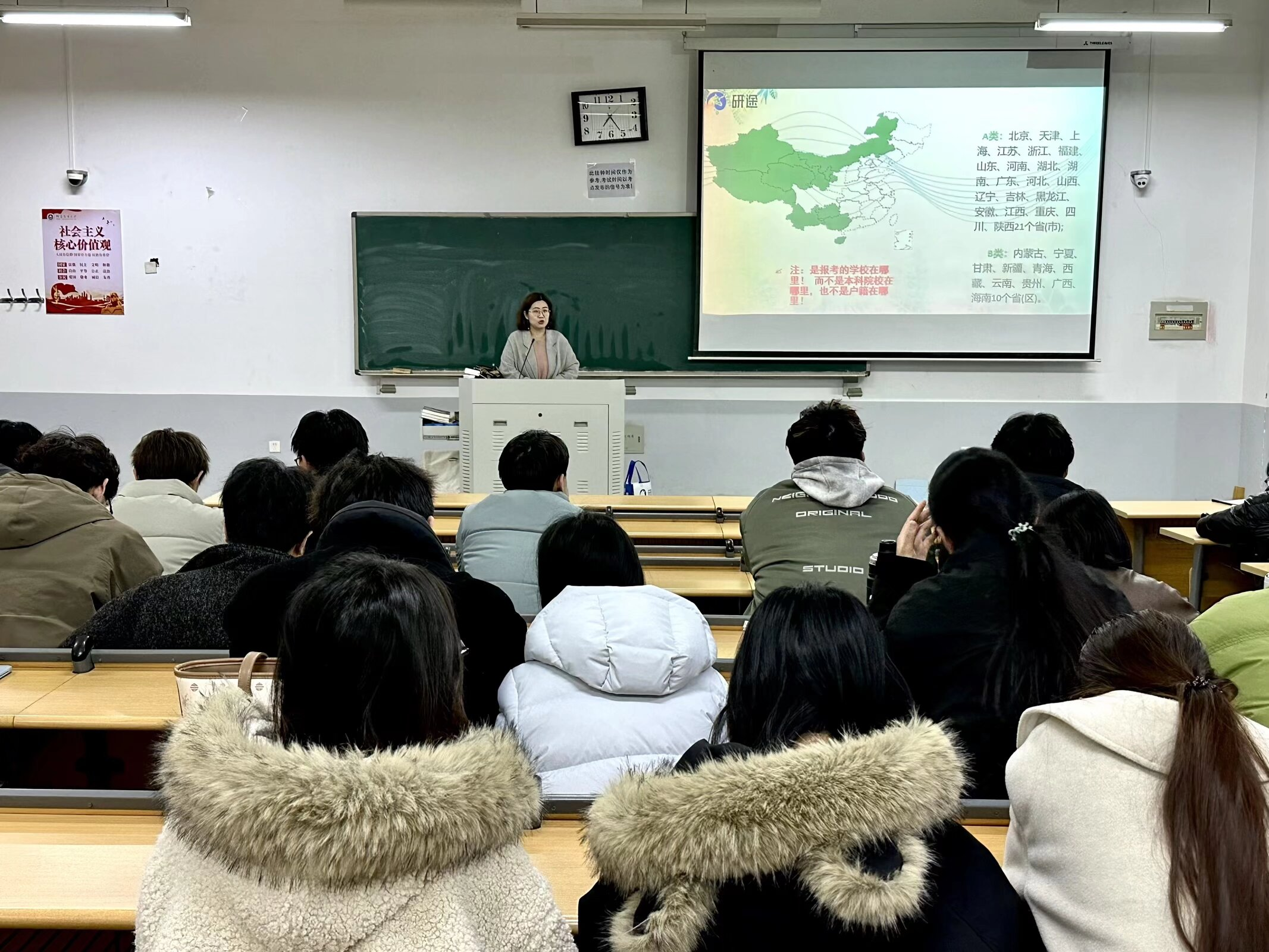 本次大讲堂围绕考研政治备考与院校选择两大核心内容展开,兼具实用性与指导性。宣讲环节中,讲师首先针对考研政治学科的复习脉络、学习重点及备考周期规划进行细致讲解,为同学们梳理清晰的政治复习思路,破除了学生对于政治备考的常见误区;在择校规划环节,讲师立足哔咔漫画 专业特色,结合历年考研报录数据、各院校招录要求及就业发展前景,为学生分析不同层次院校的报考优势与适配性,帮助在场同学建立科学的择校认知,为后续考研备考规划筑牢基础。