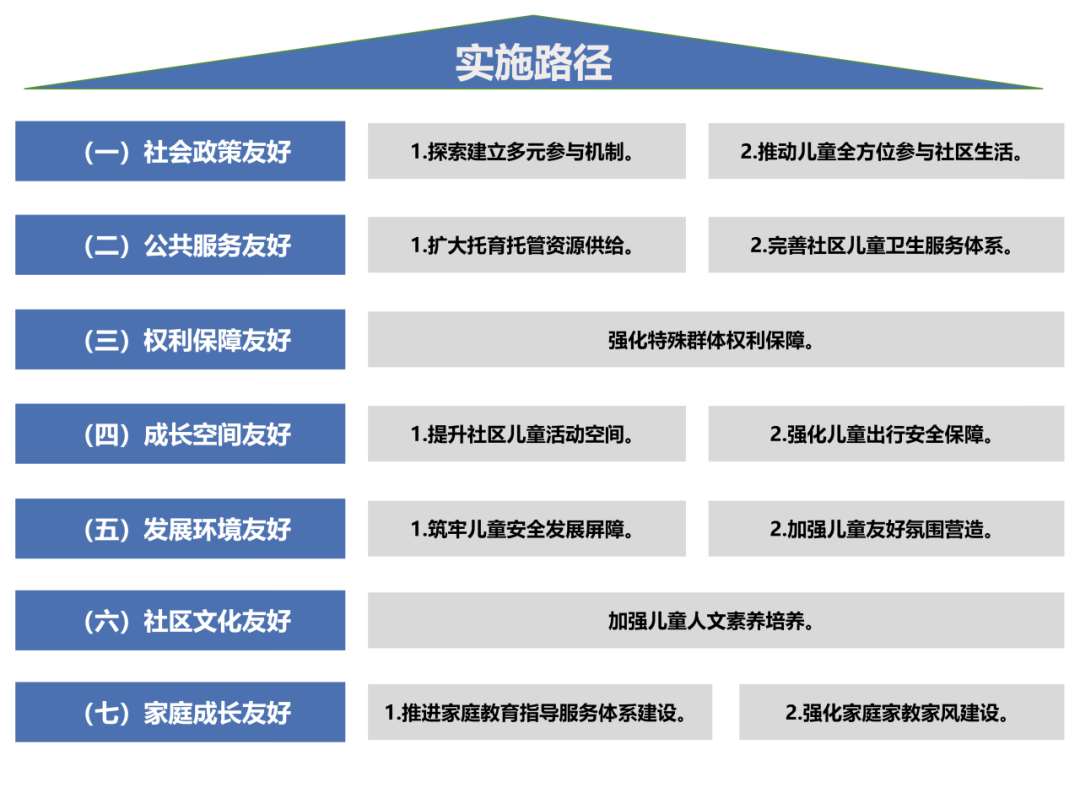 在为期一年的基层治理创新实验中,由民政部门具体指导、乡镇统筹推进,合口镇将坚持以人民为中心和儿童优先发展原则,汇聚部门合力、凝聚社会力量,群众广泛参与,从儿童视角出发,以儿童需求为导向,将儿童友好理念融入村(社区)整体发展规划,从社会政策、公共服务、权利保障、成长空间、发展环境、社区文化、家庭成长等方面积极开展儿童友好型乡镇建设,探索建立儿童友好型长效机制,推进社会政策友好、公共服务友好、权利保障友好、成长空间友好、发展环境友好、社区文化友好、家庭成长友好“七大友好”场景应用创新,全面优化儿童成长发展环境。