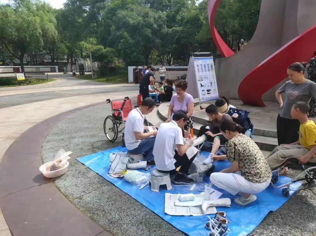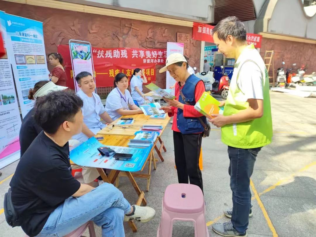 活动现场,医疗机构的志愿者们忙而不乱,有序接诊,细致地为残疾人及附近居民把脉问诊,测血压量血糖,用通俗易懂的语言向群众讲解日常护理、康复知识及各项惠残政策,为残疾康复提出指导建议。