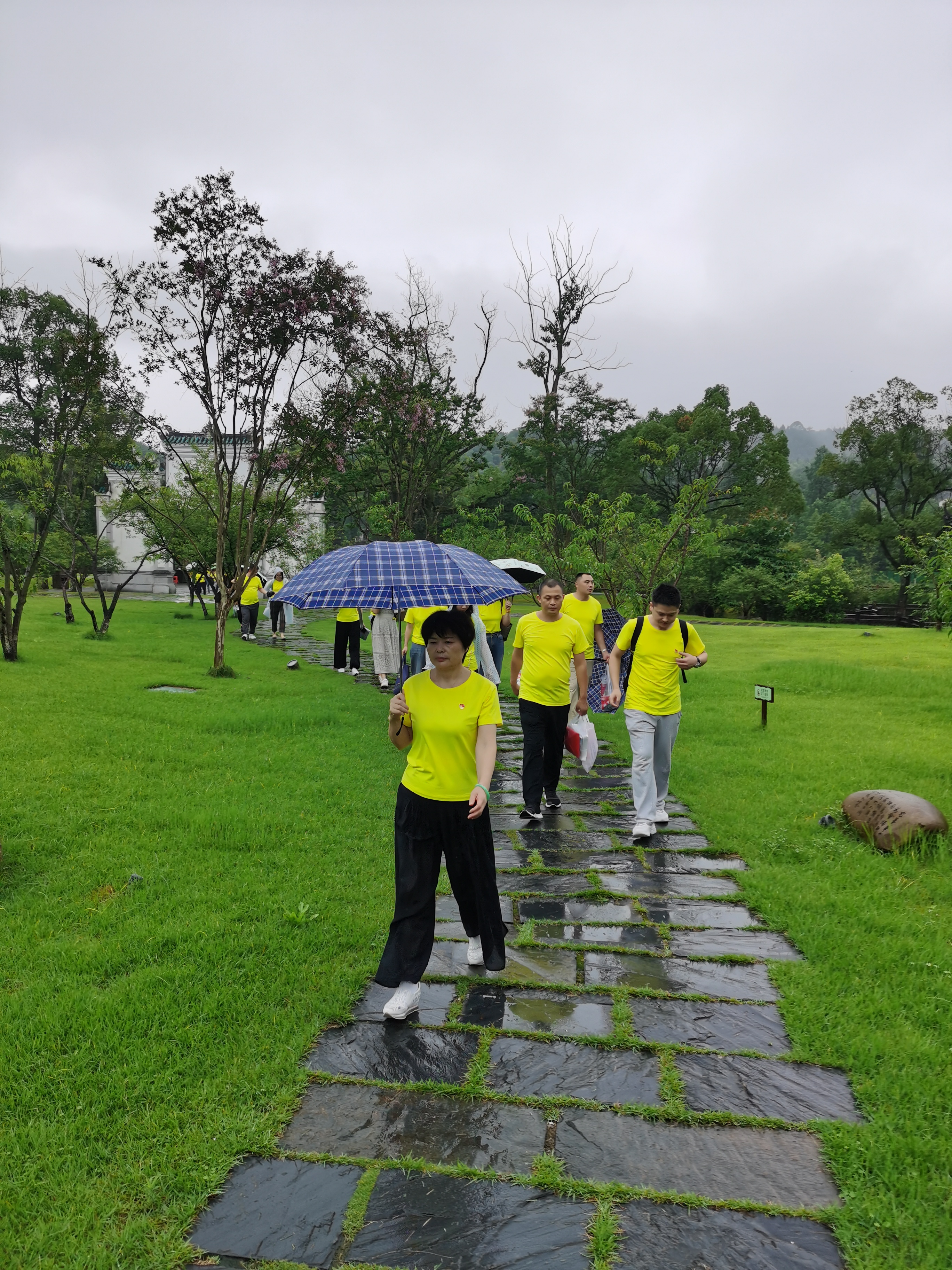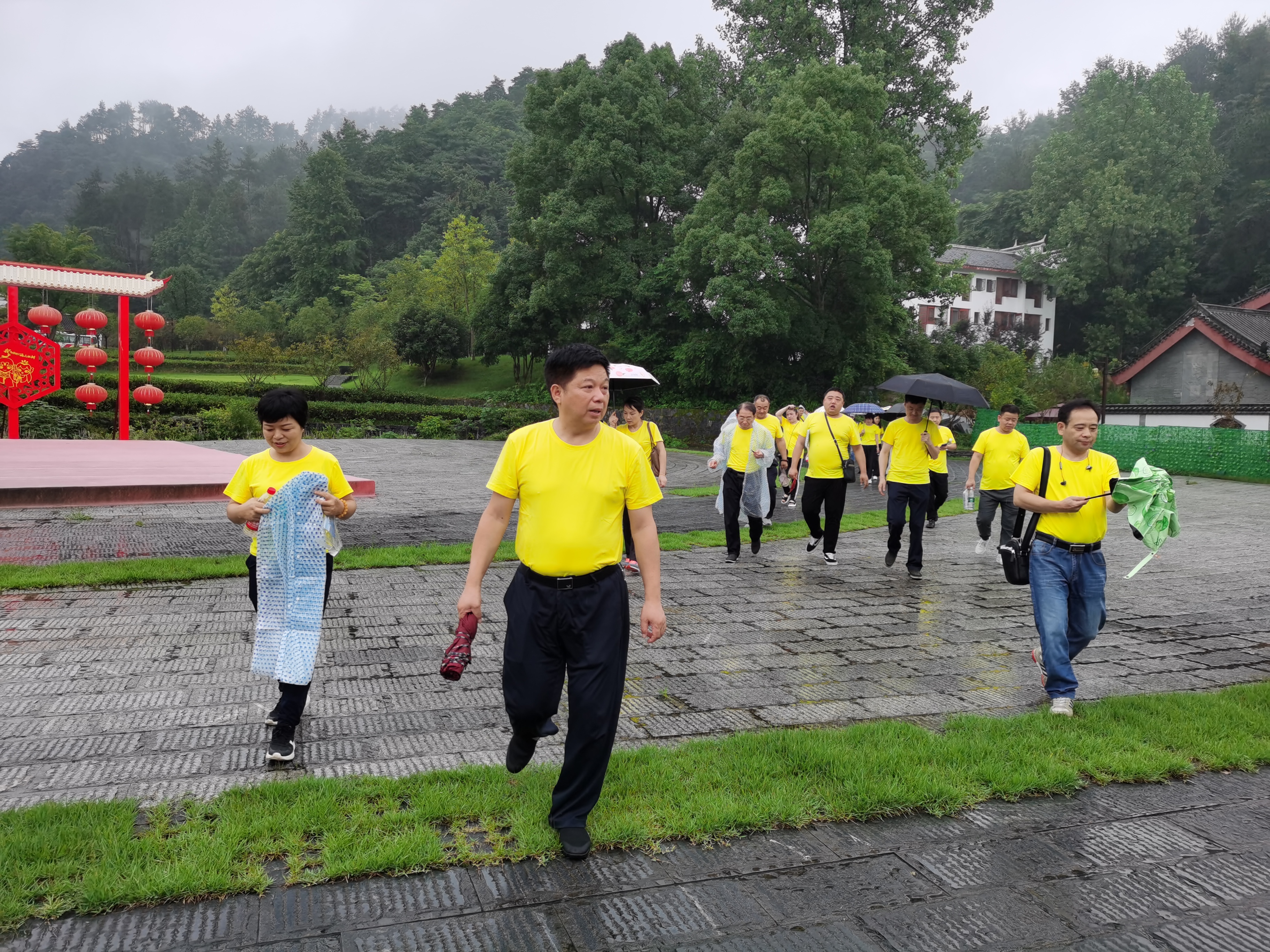 微微细雨挡不住欢快的脚步,习习凉风吹拂着跳动的激情!大家统一着黄色文化衫,由桃花山牌坊开始3公里长的健走,沿着山间小路前行,扑面而来是山中葱郁的绿色,空气中飘散着草木浓浓的清香,让人心旷神怡。大家边走边聊,大家尽情享受着大自然赐予的天然氧吧。