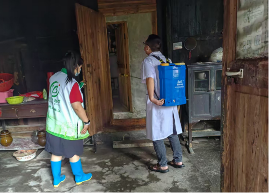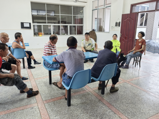 潮水退去,民政社工迅速转换角色,联合镇卫生院,全面开展灾后消杀及防疫宣传等工作,入户发放防疫宣传资料1000余份。"张婶,水一定要烧开了喝,剩菜别留着!""大爷,垃圾要及时清理,积水排完后记得开窗通风!"桃源县西安镇民政社工王碧秀化身"防疫宣传员",走村入户向群众讲解灾后饮食卫生、饮用水安全、个人卫生等关键注意事项。石门县白云镇民政社工李蕾专程前往镇敬老院,为在院老人开展“防汛安全课堂”,细致讲解暴雨避险与自救知识,增强老人防范意识,更对院内环境进行了全面、专业的隐患排查:仔细检查排水系统是否畅通、房屋结构是否稳固、周边山体及边坡是否存在滑坡风险,不放过任何一处隐患,全力保障院内老人的安全与安心。