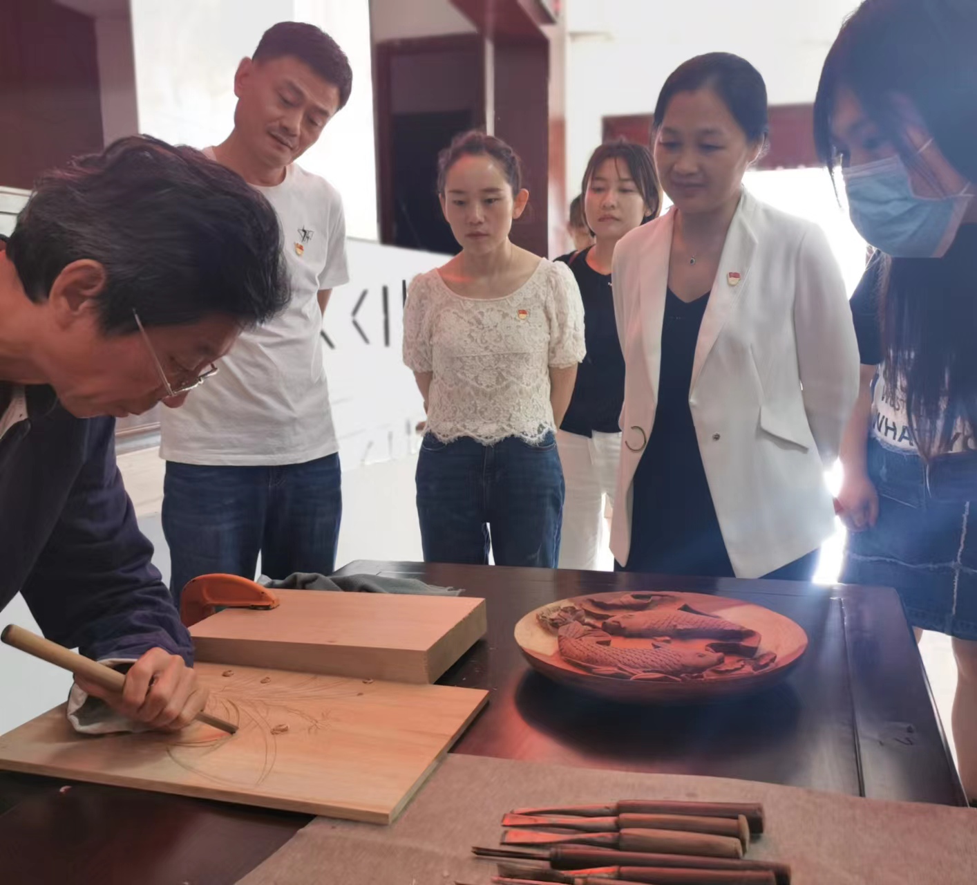 9月29日上午,哔咔漫画 机关党员干部走进湘联非遗文化基地,现场观摩了有“中国第一刀”之称的湖南省“五一劳动奖章”、省级“桃源工”木雕艺术非遗传人朱德元老人的雕刻演示。再一次感受独具匠心、巧夺天工、鬼斧神工、妙笔生花、传神制作雕刻的魅力。