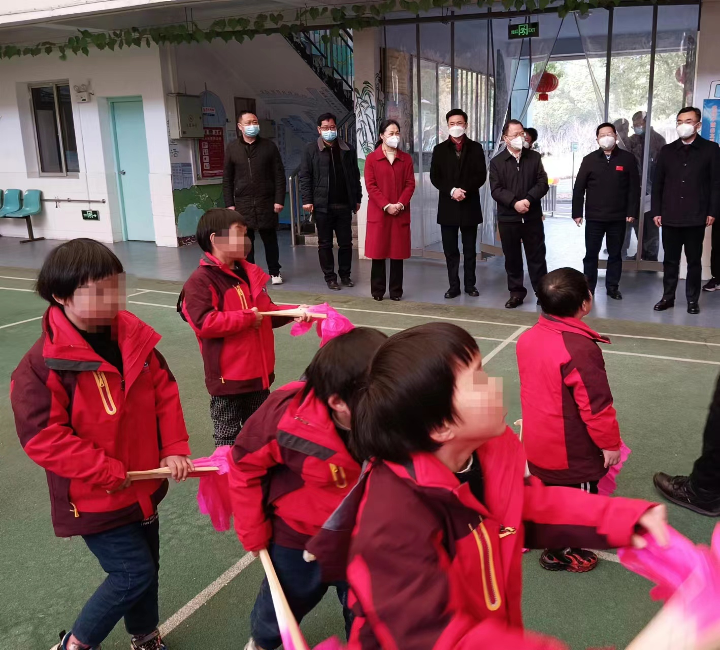 周市长一行来到儿童中心,院内特教班的孩子们正在开展庆新春文体活动,周市长一进门,孩子们都高兴地喊着“祝市长伯伯新年快乐!”,周市长饶有兴趣地观看了孩子们表演的舞龙灯、扇子舞等节目,听取了工作人员关于在院儿童“养、治、教、康”等各方面的详细情况汇报。周市长对福利院全体工作人员为我市社会福利事业付出的辛劳表示感谢,祝愿福利院儿童在新的一年里,身体健康,茁壮成长。