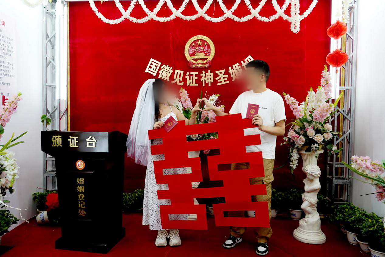 一大早,前来桃源县婚姻登记服务中心办理结婚登记的新人便排起了长队。为给登记“新人”带来热情周到的服务体验,发挥婚登党员先锋模范作用,婚姻登记服务中心提早准备,动员中心工作人员“全员到位,提前到岗,推迟下班”,对登记新人提供流程咨询、现场引导等服务,并采取预约进入、分批错峰办理等措施为新人们提供便利,有效缓解人员高峰压力。同时联合疾控中心布置健康宣传展架,为新人准备矿泉水,并在水瓶上制作了疾病预防健康标语,积极开展颁证宣誓、移风易俗现场宣传,确保了“520”领证高峰期间婚姻登记服务工作有序顺畅。