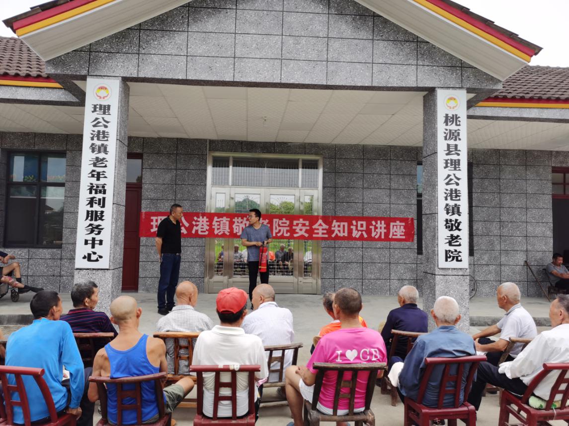为进一步增强养老机构消防意识,提高敬老院火灾应急扑救处置能力,掌握应急疏散的程序和方法,6月9日,理公港镇社会事务服务中心联合镇专职消防队走进敬老院开展安全知识讲座及消防应急演练。