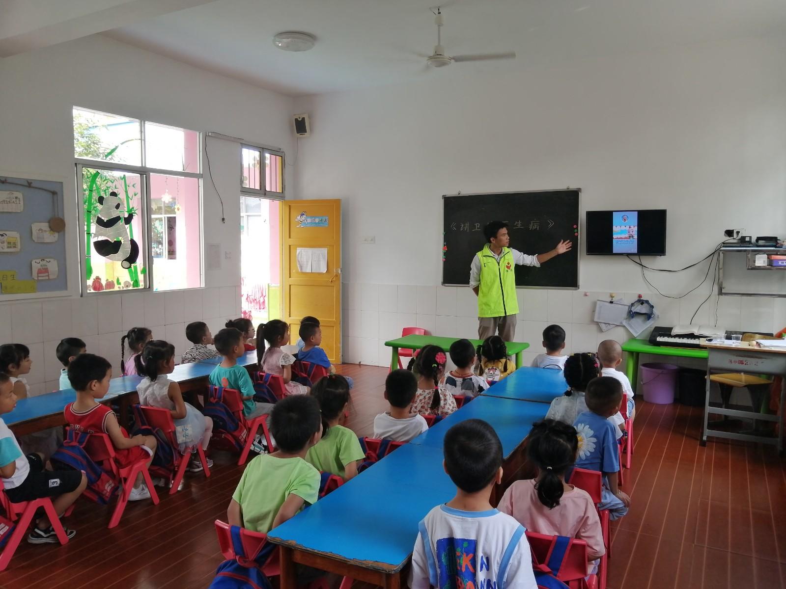 此次活动在韩公渡镇英英幼儿园进行,为了更好更直观的帮助小朋友们认识牙齿,通过玩游戏、科学小实验、观看正确刷牙视频等环节,向小朋友们介绍了爱护牙齿的重要性、产生龋齿的原因及危害,让小朋友们对牙齿健康有初步的认识与了解。