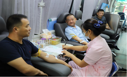 活动现场,气氛热烈而温馨。同志们精神饱满,依次排队进行填表登记、血压测量、抽血化验、健康咨询、上车采血。他们当中,有永葆军人本色的退役士兵,有数十年如一日服务在殡葬一线、刚刚值完夜班的老党员,他们在不同工作岗位上,以特殊方式守护生命的尊严、慰藉生者,此刻又以汩汩流淌的热血传递生命的希望,用热血诠释民政为民情怀。退役军人周勇志同志回忆,“今年是他参与的第11次献血,每次看到自己血液被成功启用,帮助到更多需要帮助的人,心里感到特别开心!”