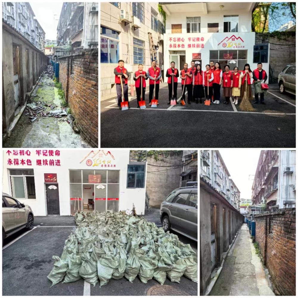 此次活动前,局机关一、二、三党支部联合组织开展了实践活动,党员志愿者们来到局机关居民楼,清除巷子里因冰灾遗留下的瓦砾和杂物,他们有的铲、有的提,分工协作,一个个干得汗流浃背,经过两小时的辛勤劳动,一共清除近200袋废弃破损的瓦砾,居民楼背巷过道变得干净整洁。