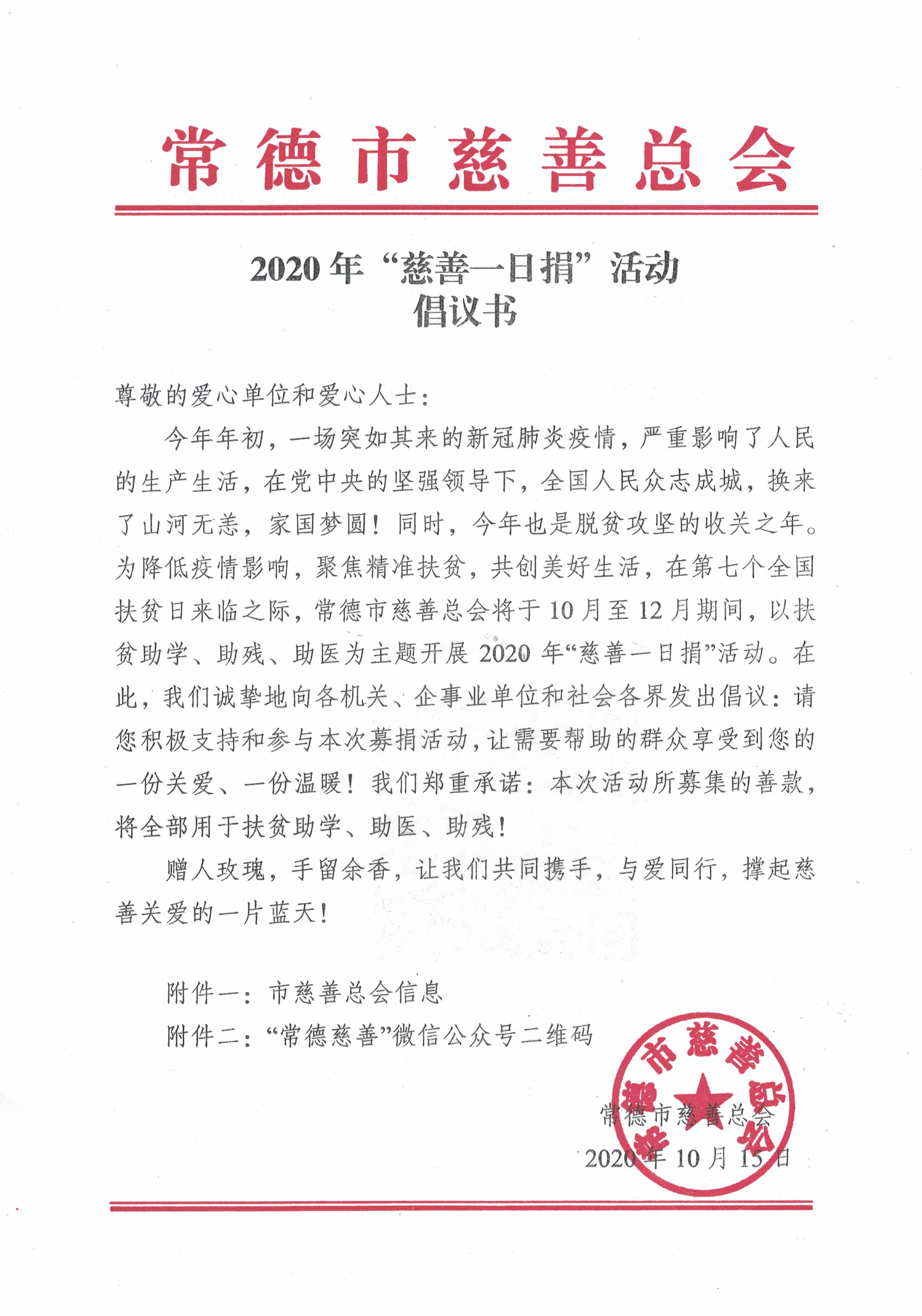 为聚焦精准扶贫,共创美好生活,切实做好2020年“慈善一日捐”活动,根据常德市慈善总会《关于开展2020年“慈善一日捐”活动的通知》,第五党支部发动党员志愿者,在10月20日-11月13日,对市人大等17家单位进行活动宣传。
