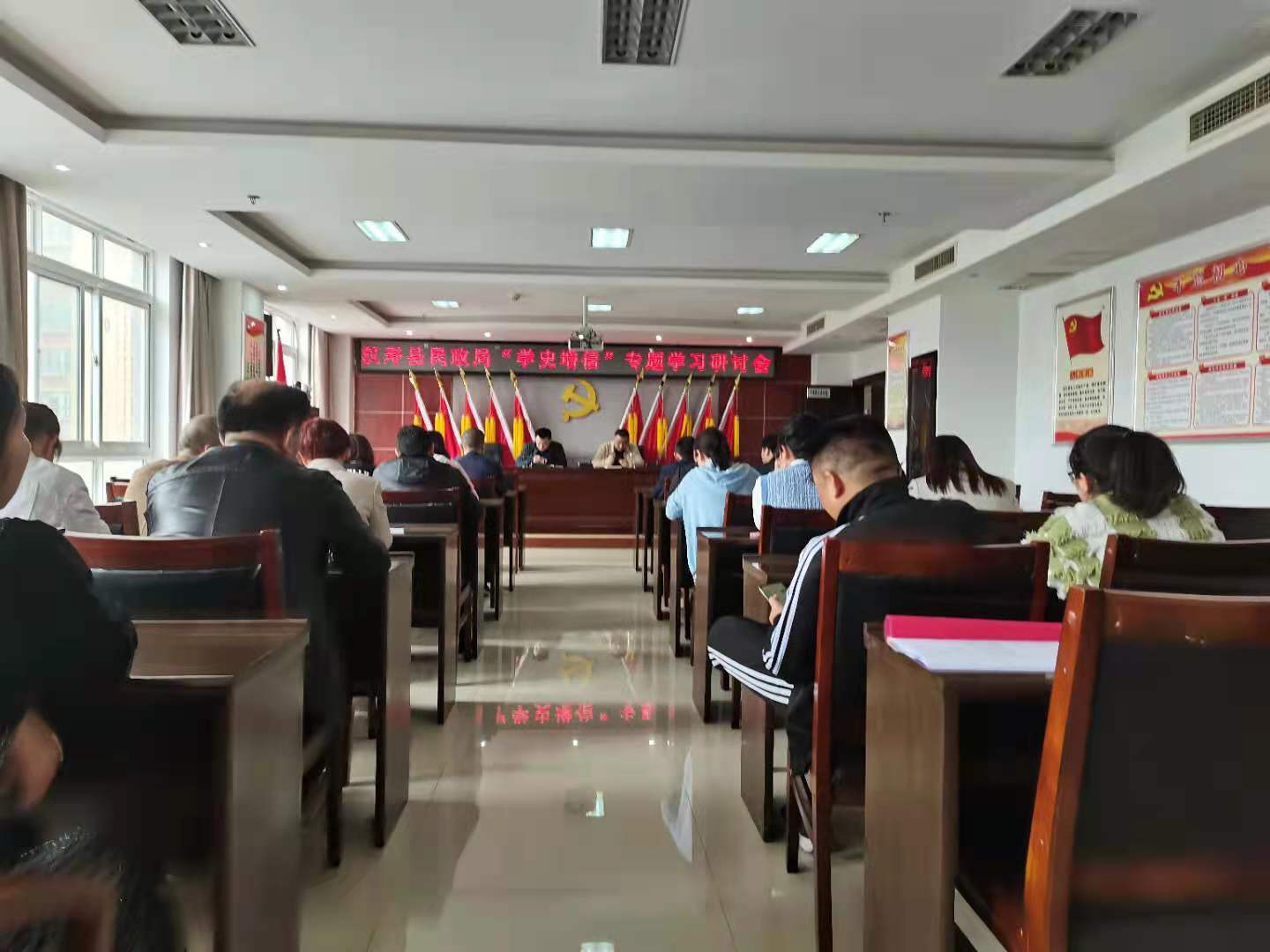 在学习研讨会上,张晓静局长对民政干部职工提出了要求,希望大家以认真的态度对待党史学习教育,真学、学深、做实,从思想上紧起来,行动上动起来,党组班子成员要起带头作用,营造民政良好的学习氛围。