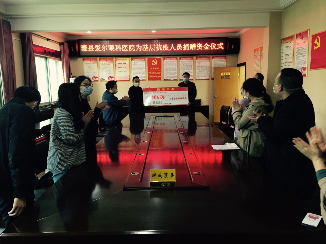 4月13日,澧县爱尔眼科医院向基层抗疫人员捐赠资金仪式在澧县哔咔漫画举行。澧县爱尔眼科医院代表、澧县哔咔漫画党组书记、局长谭斌,副局长黄大玉及相关人员参加了捐赠仪式。