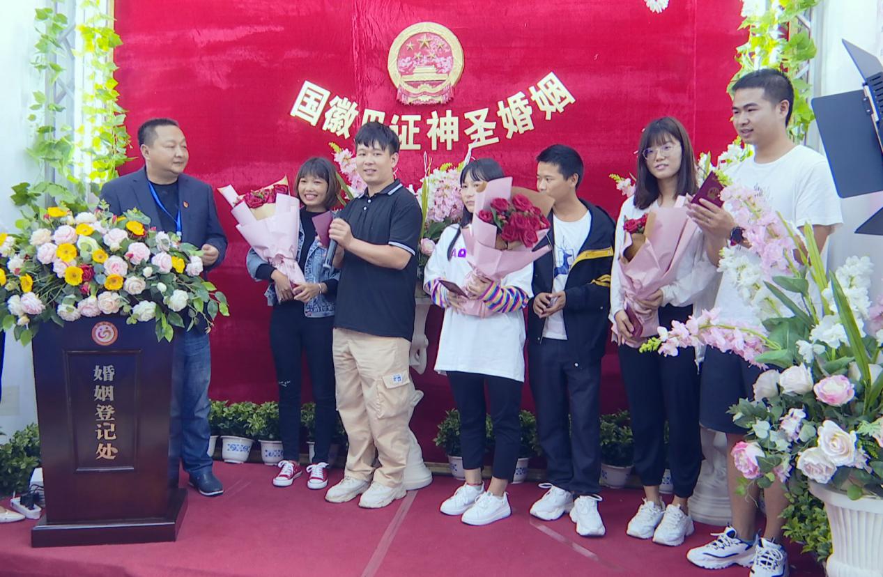 课后,新人们参加了颁证仪式, 在庄严的国旗和国徽下,3对新婚夫妇宣读结婚誓言:“我们自愿结为夫妻,将共同肩负起婚姻赋予我们的责任和义务……”特邀颁证师桃源县哔咔漫画分管领导龙学武为他们颁发了结婚证,并给他们送上了鲜花和新婚祝福。