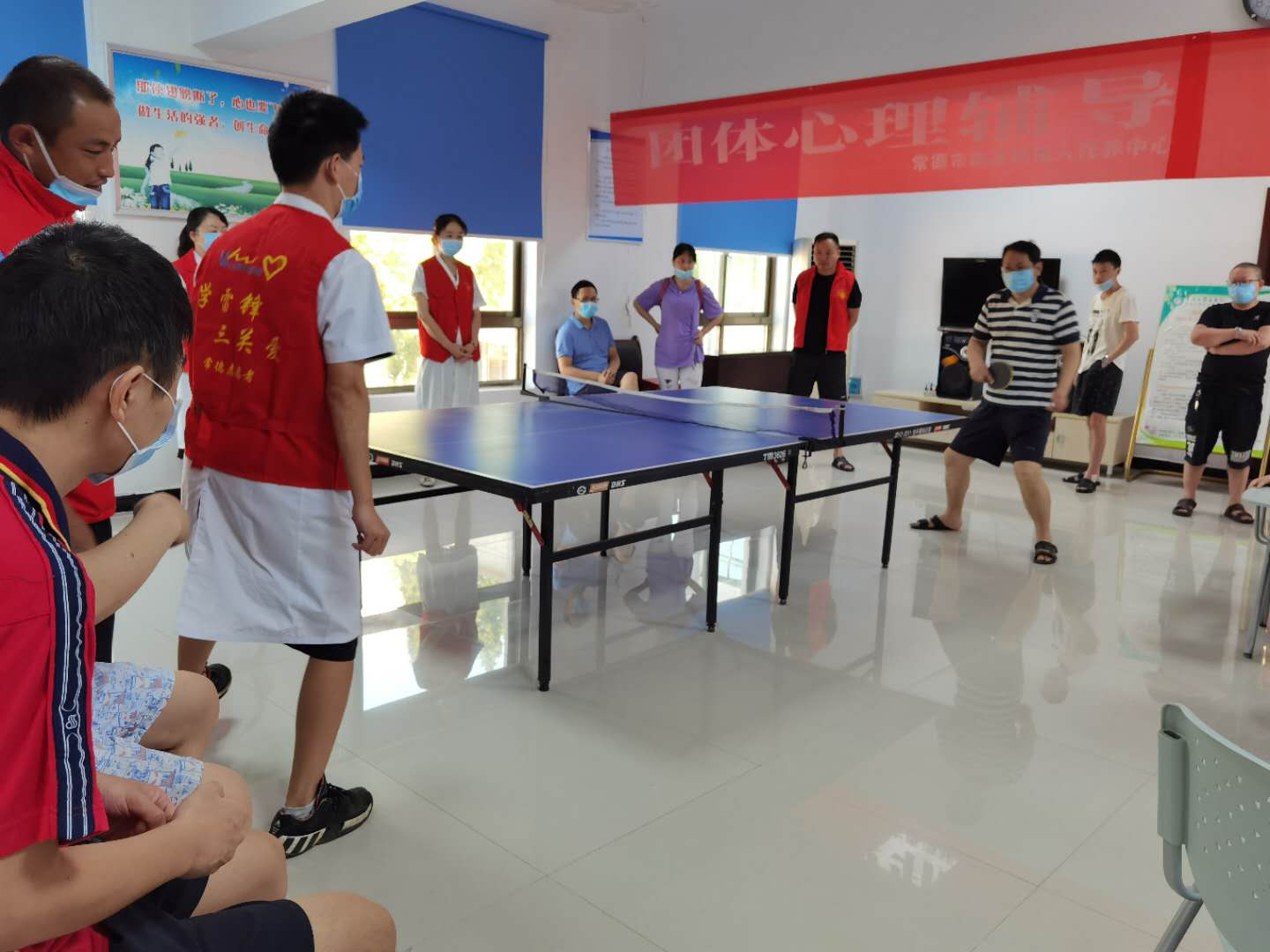 2020年7月23日上午9点,常德市康复医院助残志愿队来到市康源残疾人托养中心,志愿服务者教学员们做课间操、打乒乓球、玩游戏、折报纸等多项活动,帮助学员提高自身的行动能力。折报纸对于正常人来说是一件非常简单的事,但对于特殊学员来说,学会就不容易了。有一位学员不但身患精神残疾,同时还伴有智力障碍,一位志愿者坐在他身旁,手把手教他如何折叠,动作迟缓的学员经过反复的学习,终于折得有棱有角,可以装信封了,最后露出了灿烂的笑容。