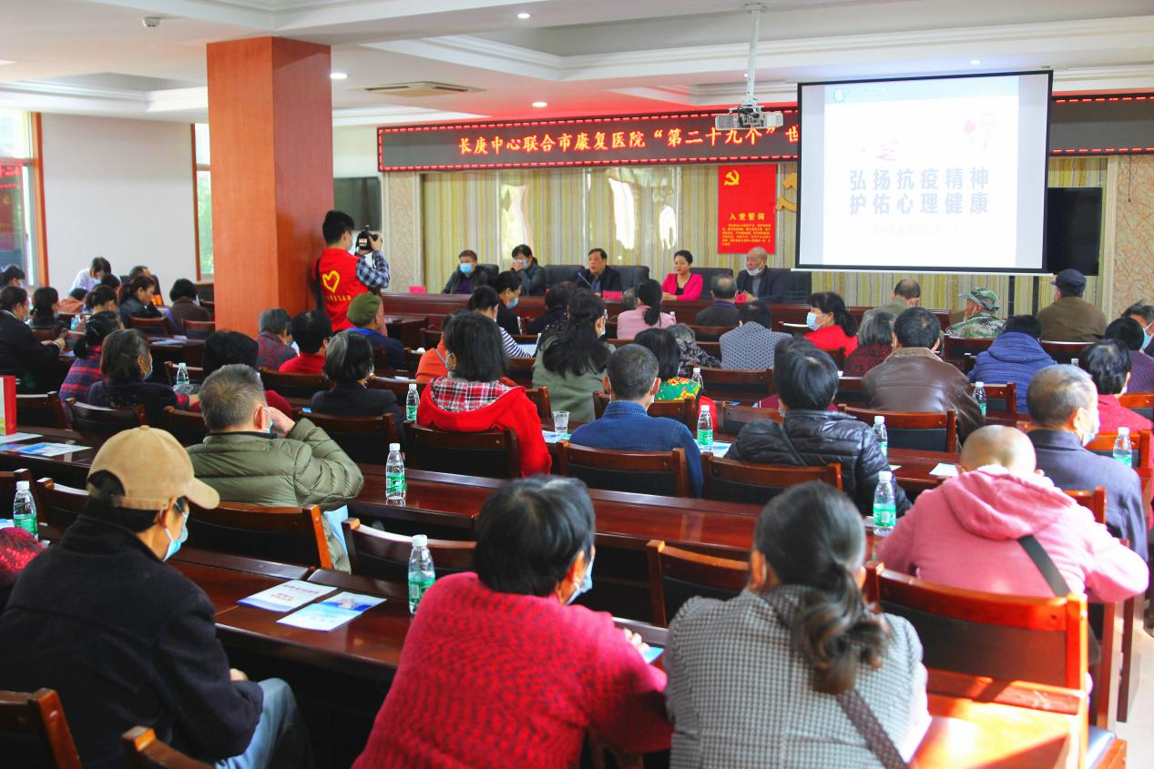 活动现场播放了精神卫生心理健康知识宣教视频,常德市康复医院专家唐华秀以《弘扬抗疫精神,护佑心理健康》为题开展了健康人群心理卫生知识讲座,为社区居民提供了许多有益健康的专家性建议,来自长庚街道的近200名居民早早地就来到了会场悉心聆听。